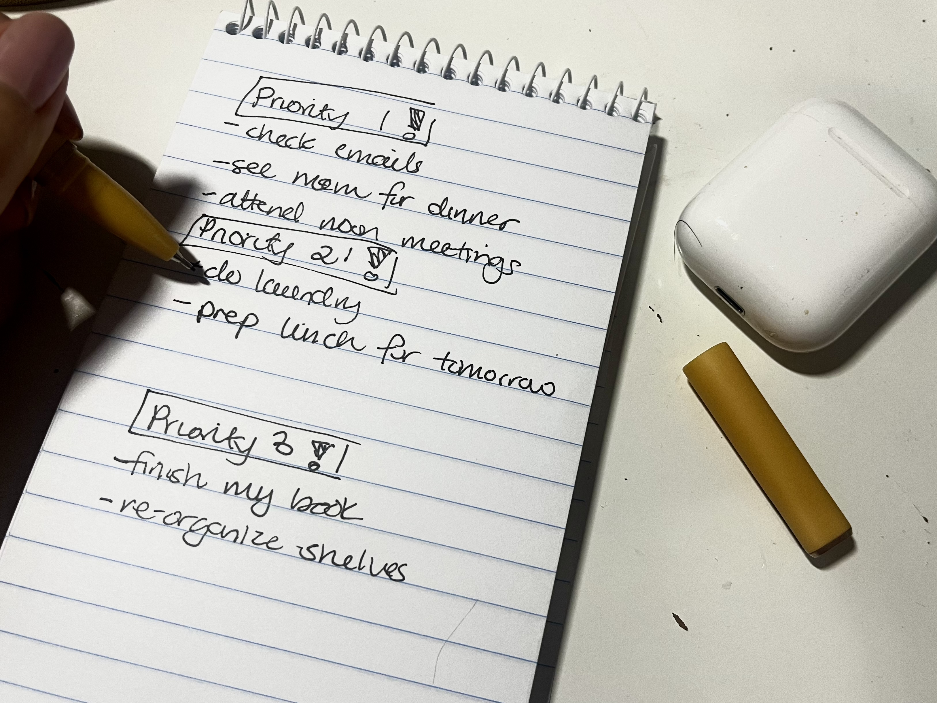 Before bed, I always take a moment to create a “to-do list” for the next day. This helps me keep track of what I need to accomplish and figure out how much time I should dedicate to each task. Crossing things off one by one is easily satisfying, and it brings me closer to both my short-term and long-term goals.